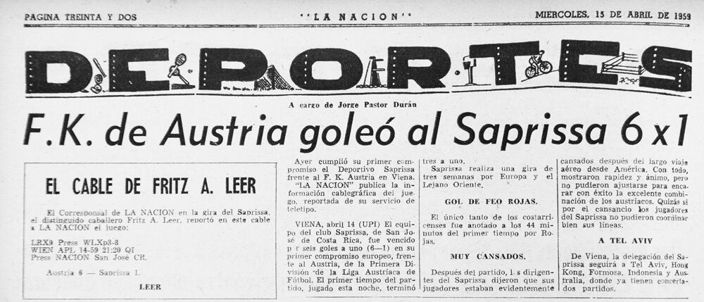 En aquella época, Jorge Pastor Durán, encargado deportes de este diario, relató hábilmente los compromisos del cuadro morado, gracias a los detalles de Fritz A. Leer; además, se apoyó en las agencias internacionales UPI y la AFP, que en contadas ocasiones enviaron información de los partidos del cuadro tico.