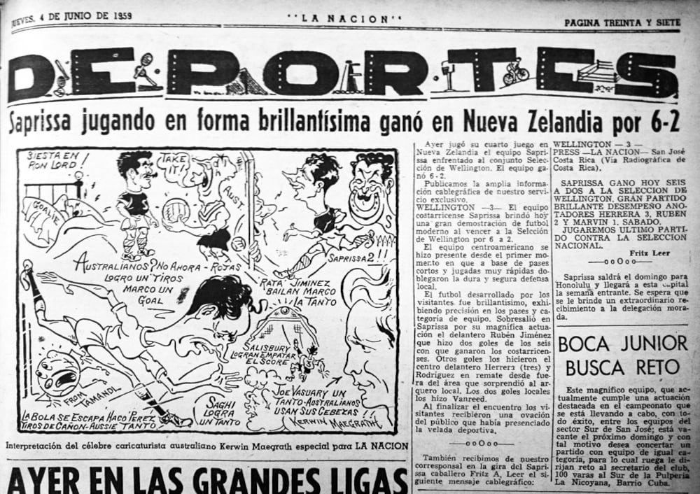 Sin duda, la gira del Deportivo Saprissa fue la noticia deportiva de 1959. La Nación en sus páginas resaltó la expedición del conjunto morado que viajó el 29 de marzo rumbo al Viejo Mundo para demostrar el buen fútbol de la escuadra costarricense.