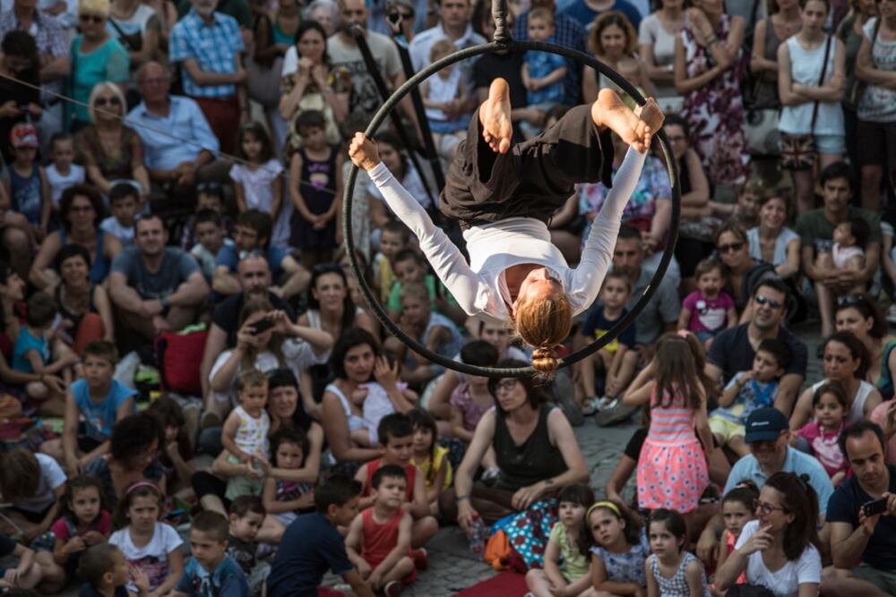 Theatre TOL (Bélgica): Pedaleando desde el cielo ofrece artes aéreas. Función en la Plaza de la Democracia el 29 de junio a partir de las 6 p. m.