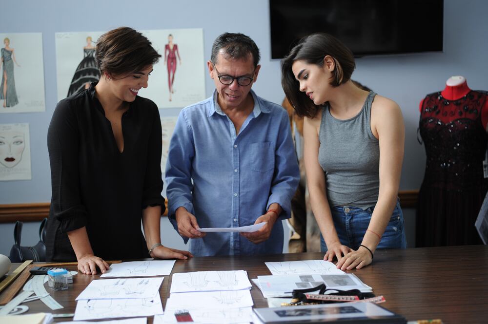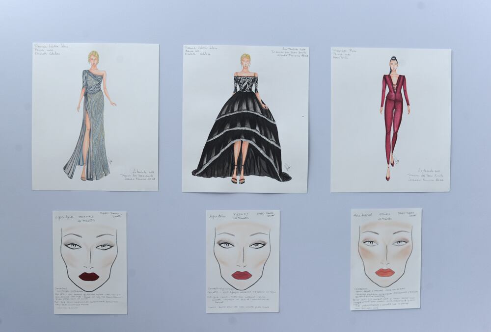 “Buscamos inspiraciones, colecciones, un montón de diseñadores que podemos ver para poder sintetizar todo en este concepto”, dice Pamela Gutiérrez, asistente de vestuario. Referencias de Dior, Saint-Laurent y Cavalli han nutrido la propuesta, no solo para personajes principales, sino también para el coro, que estelariza dos grandes fiestas que se celebran durante la ópera: en ambas son personajes distintos y cada quien tiene su propio look .