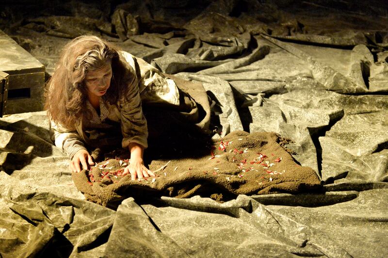 Una serie de monólogos y escenas divididas en 16 episodios transcurren entre escombros, ruinas y polvo. “Es una obra muy humana”, comenta Sandoval.