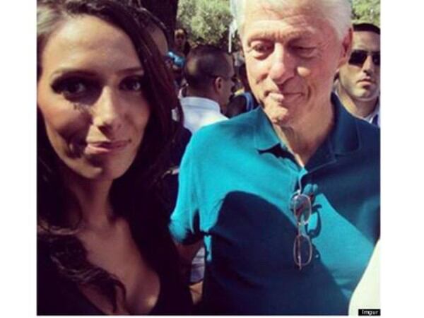 En una fotografía tomada en diciembre 2013, Bill Clinton no pudo desviar por estos días su mirada del profundo escote de una admiradora, con quien aceptó aurorretratarse.