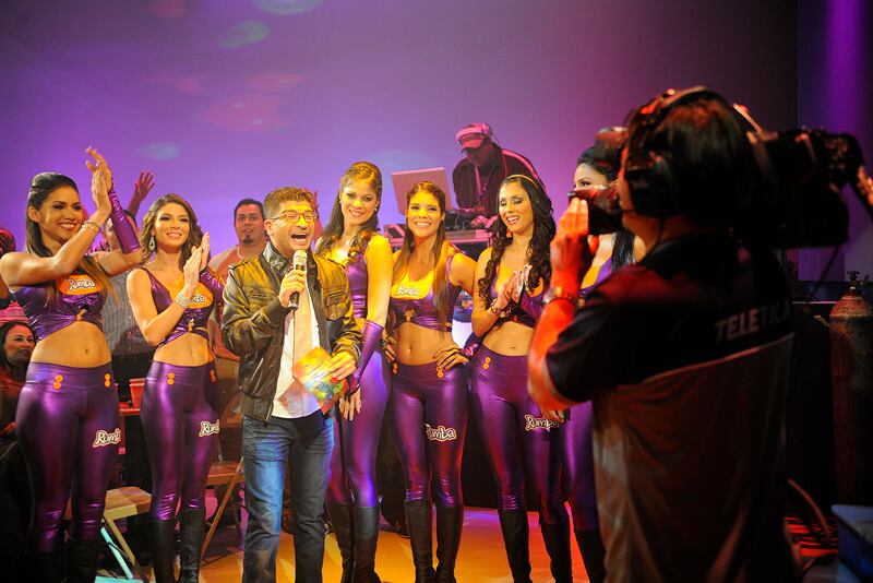 Durante los cortes comerciales, los presentadores Carlos Álvarez y Marilyn Gamboa aprovechan para corregir su maquillaje, tomarse un fresquito o bien encender más a la bulliciosa asistencia; por su parte, las Rumberitas tratan de recordar los pasos de sus coreografías detrás del escenario.
