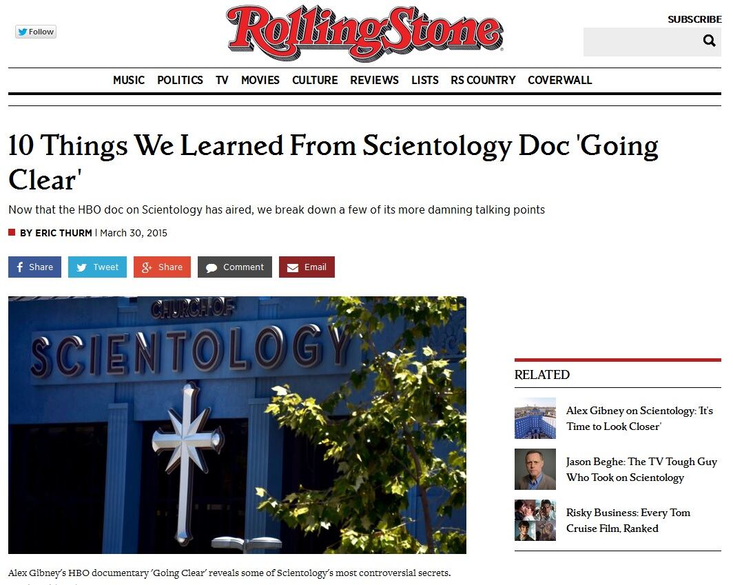 El estreno de Going Clear: Scientology and the Prison of Belief, del canal HBO, reunió este domingo a 1,7 millones de espectadores, la mejor marca para el debut de un documental en ese canal desde el 2006.