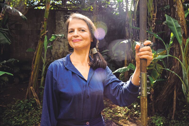 En una casa muy atípica, hecha al estilo rústico, con balcones, troncos de árboles secos, muchos helechos colgando del techo, una huerta, tres perros y una cabra, vive la queridísima Jill Paer.