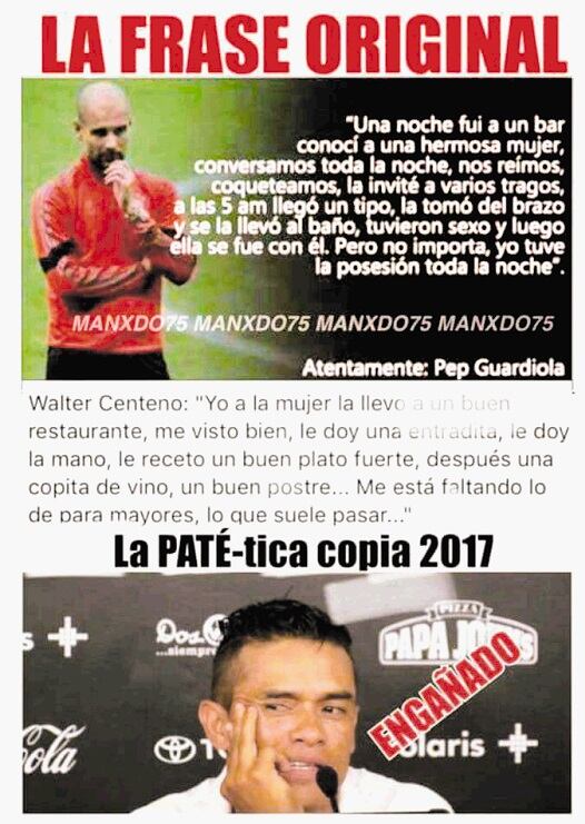 El problemita fue que Centeno –ignoramos si ya traía la anécdota “breteadita” o se le ocurrió ahí mismo– comparó lo ocurrido en la cancha con el galanteo que hace él cuando “chinea” una mujer con el fin postrero de tener sexo con ella al final de la jugada (valga la “parábola”, como diría Paté).