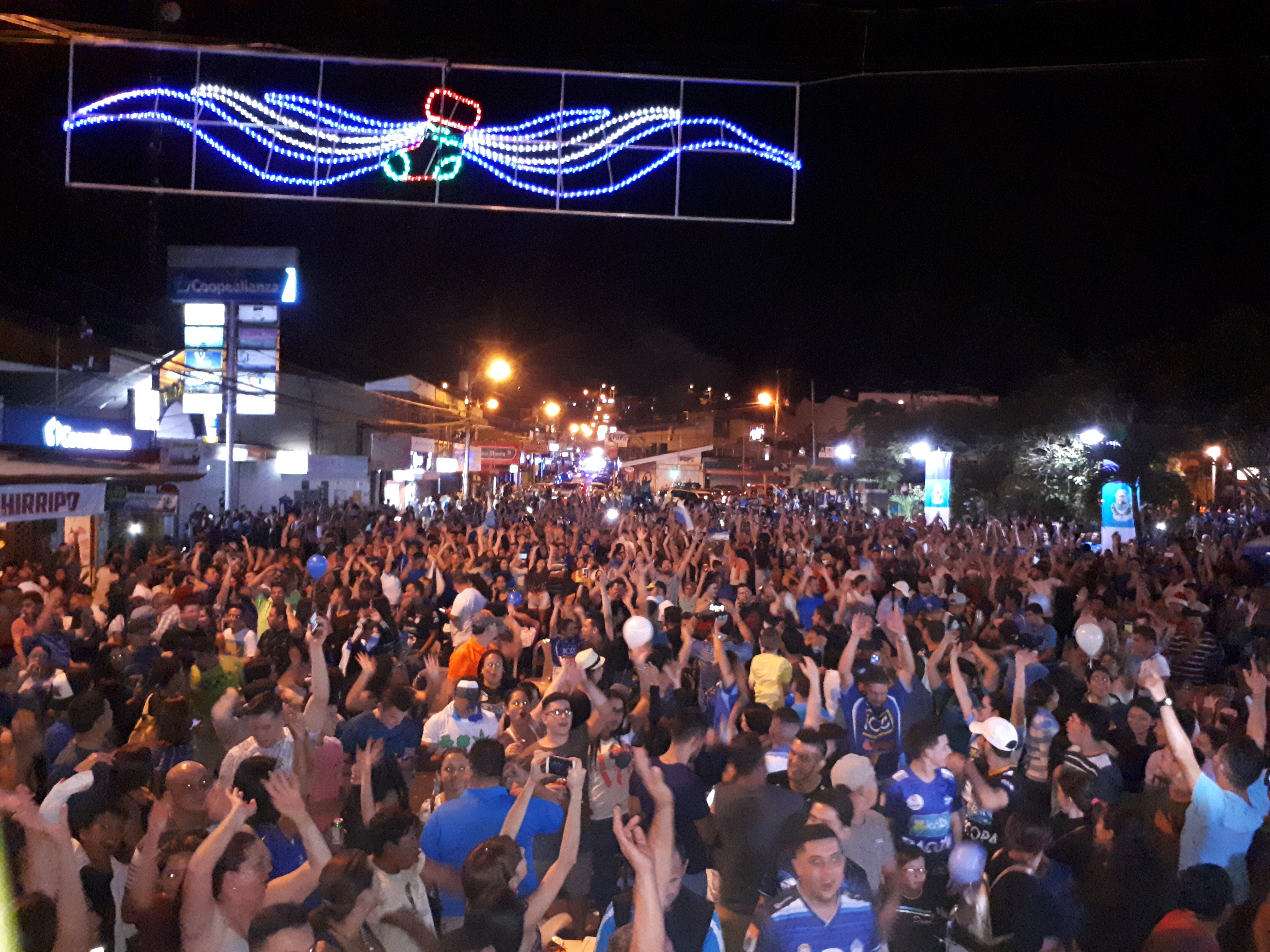 La escena la repitió el 24 de diciembre en la madrugada, cuando todo el equipo se bajó del autobús para compartir con los seguidores en el parque de Pérez Zeledón. El trofeo pasó de mano en mano, de aficionado a aficionado, sin filtros.
