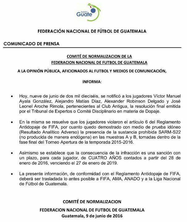 'La mejor defensa para ellos era decir la verdad, ellos nunca se pronunciaron, ellos prefirieron no hablar por recomendación de sus abogados y el presidente del club (Antigua). Inclusive en la primera audiencia se les suplicó que hablarán, pero su representante dijo que no lo harían. Ellos tuvieron oportunidad de hablar, pero argumentaban silencio total".