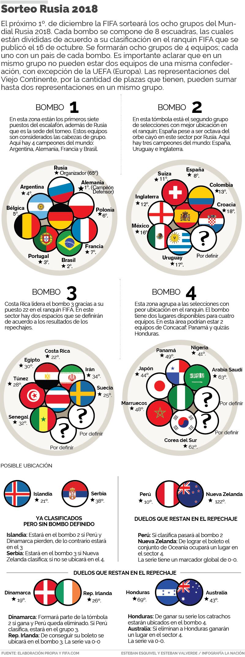 En la infografía anterior le presentamos cómo se realizará el sorteo para Rusia 2018.