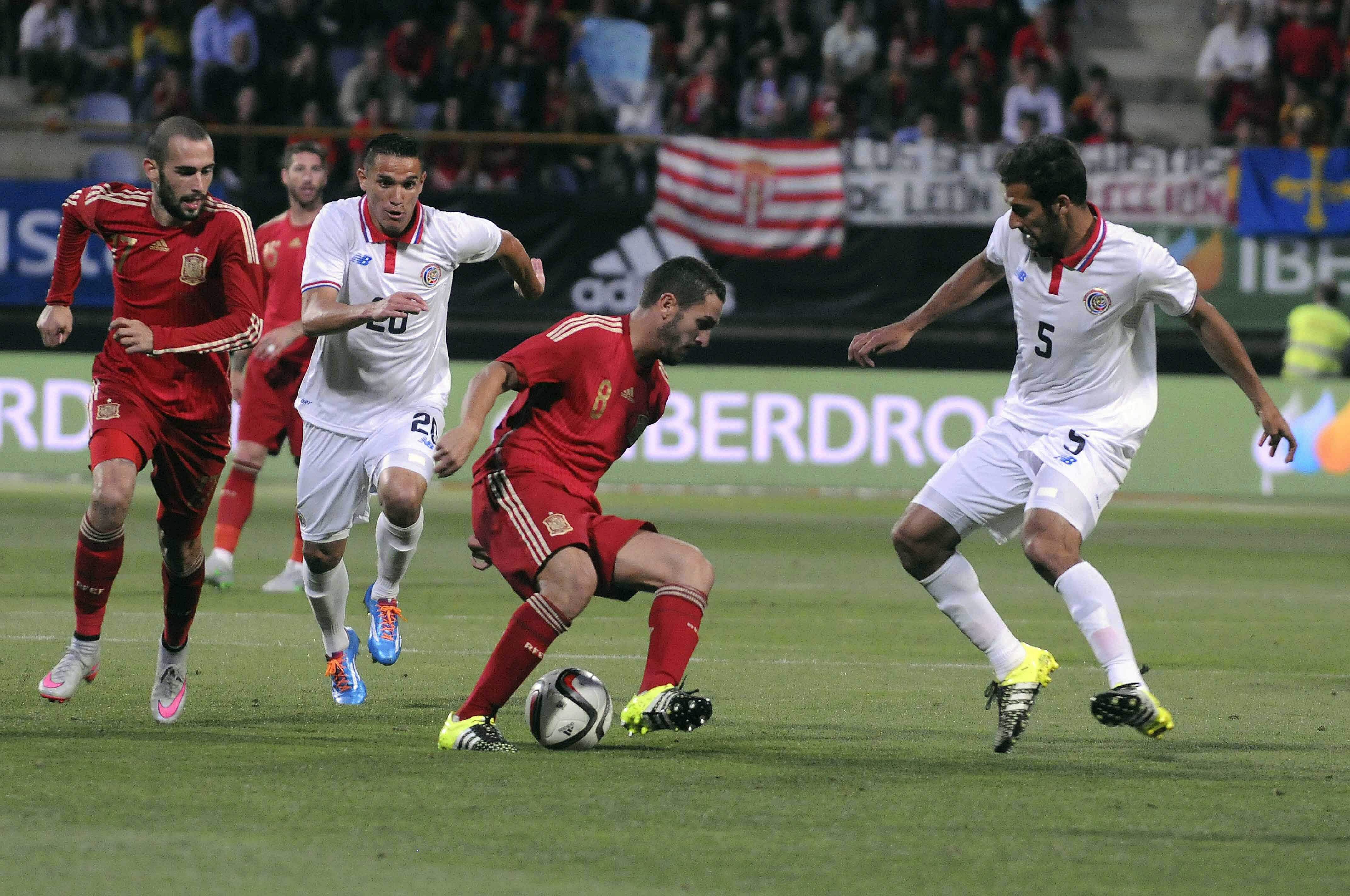 Goles: 1-0 (31′): Rándall Brenes. 2-0 (42′): Joel Campbell. 2-1 (83′): David Silva. 2-2 (90+3′): David Villa.