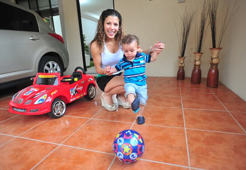 El pequeño Arjen Barrantes, de poco más de un año, apenas camina pero ya patea un balón más grande que la mitad de su cuerpo justo como su padre hace casi 29 años.