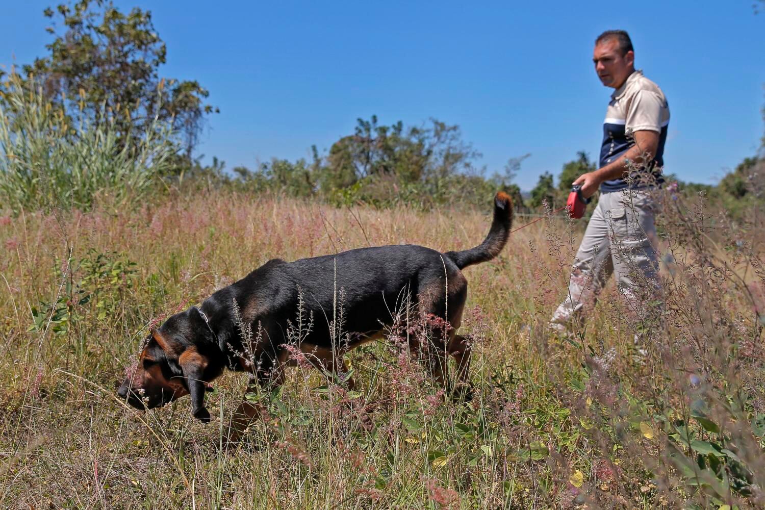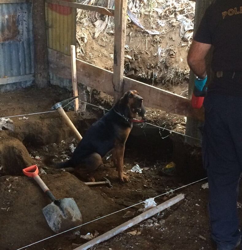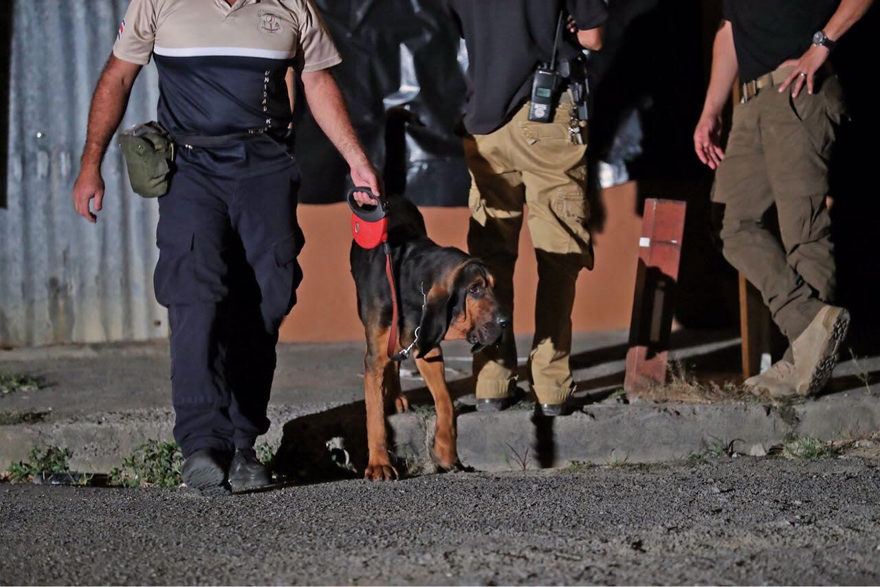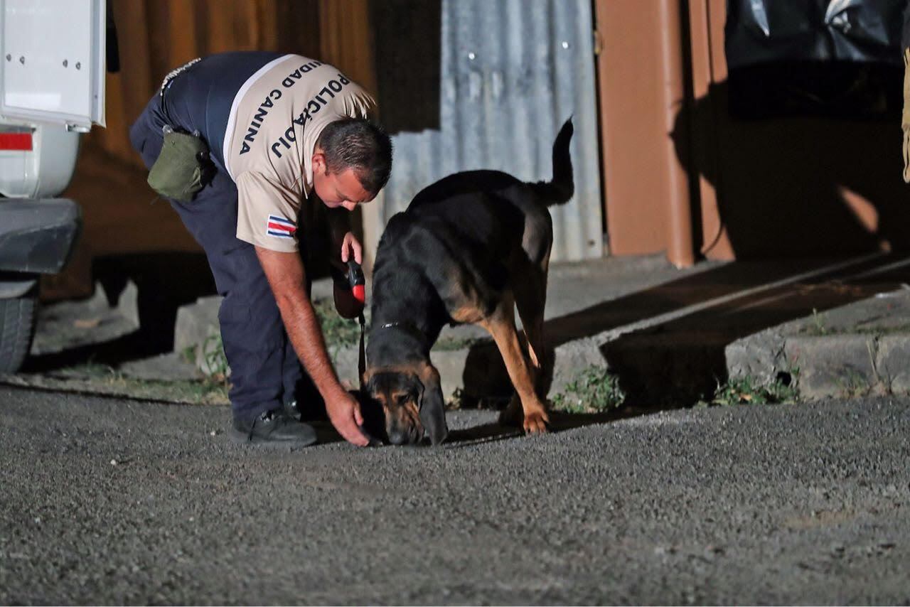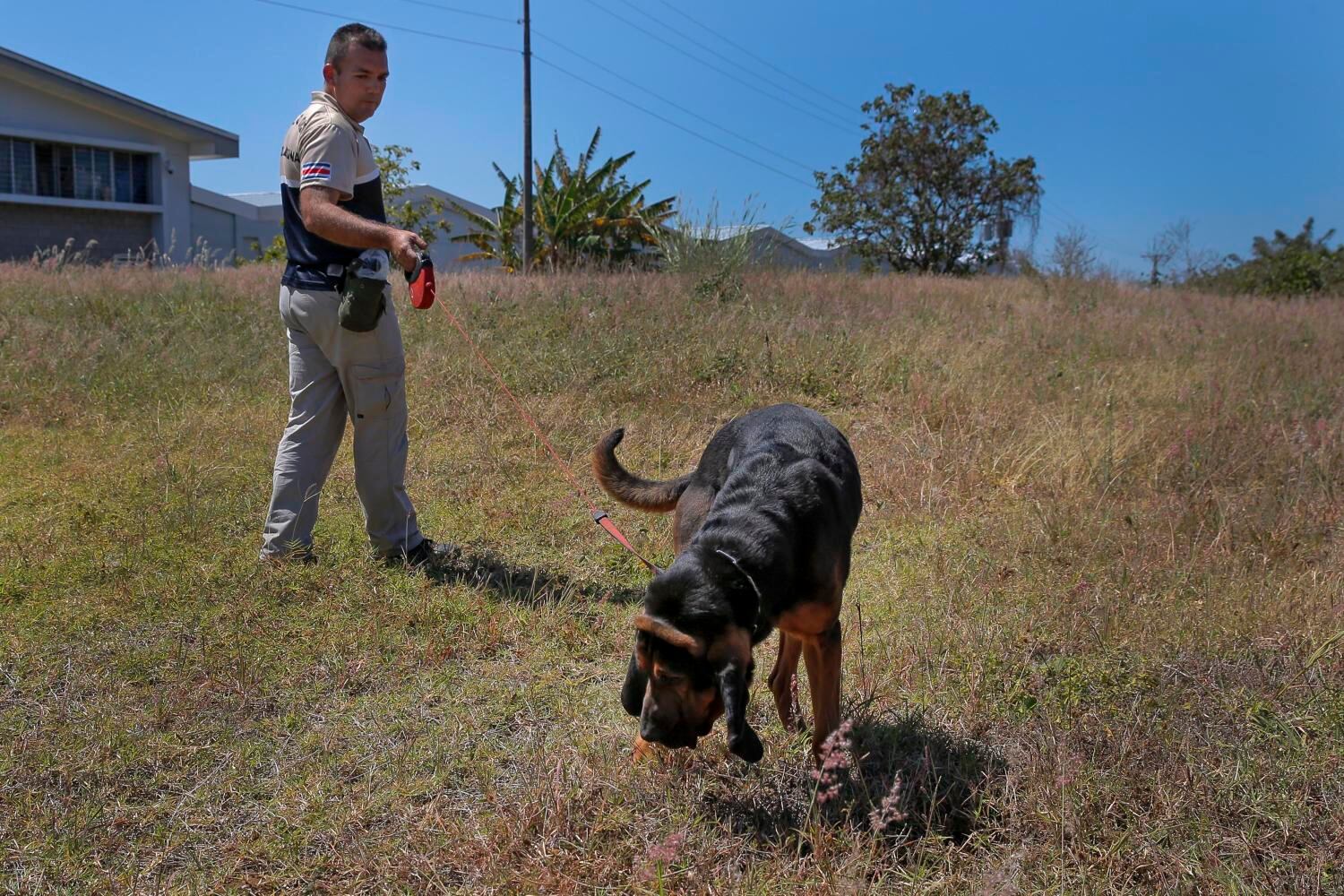 Este es Aquiles, el perro adiestrado que encontró rastros de sangre en una pantaloneta y un par de tenis, así como un cuchillo con el que el sospechoso de la masacre en Liberia pudo haber asesinado a cinco universitarios el 19 de enero pasado.