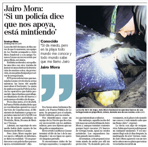 La madrugada del 31 de mayo del 2013, Jairo Mora Sandoval fue asesinado. Su nombre se convirtió en bandera del conservacionismo.