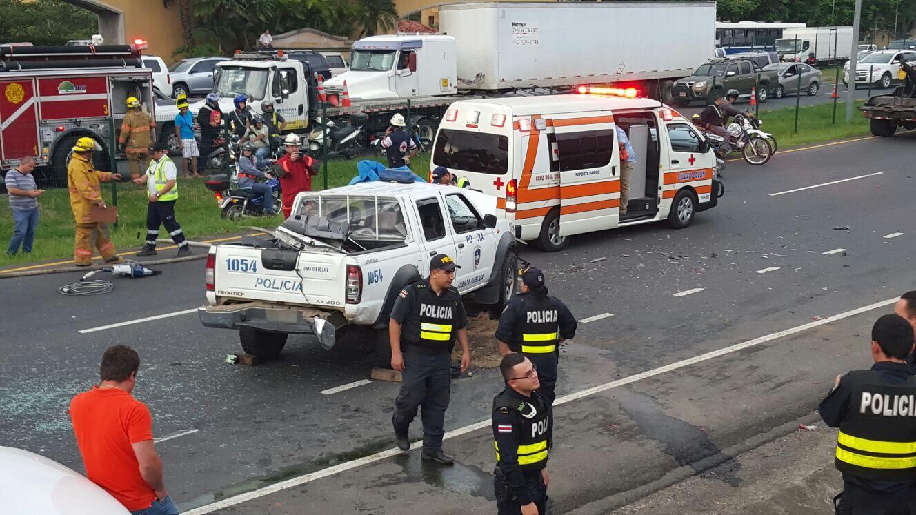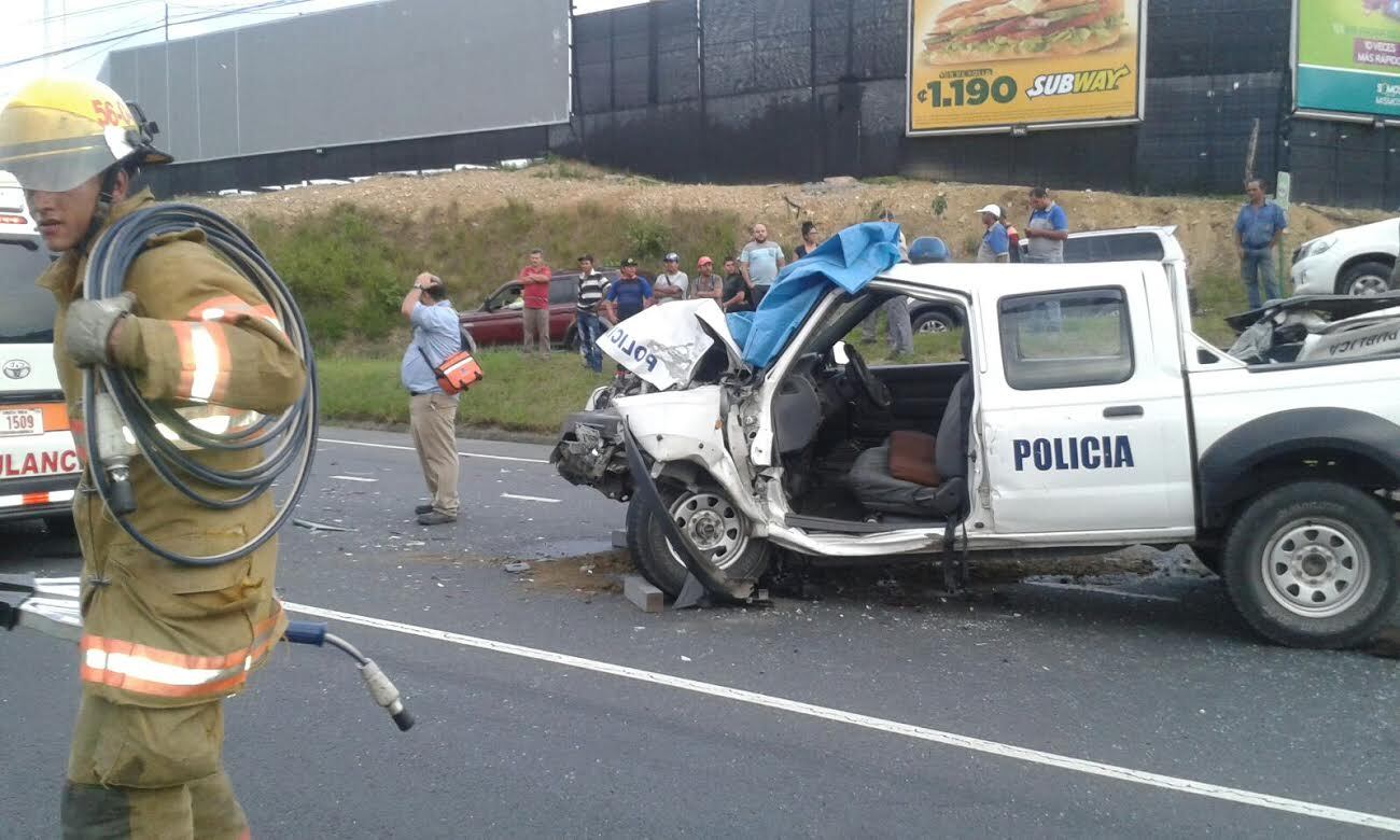 La patrulla que seguía a los ladrones quedó destrozada al chocar contra un carro particular en la autopista Próspero Fernández. (Wilbert Hernández)