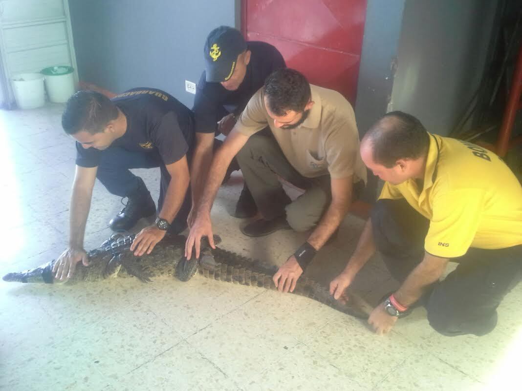 Oficiales del Servicio Nacional de Guardacostas reubicaron la mañana de este jueves a un cocodrilo que atraparon en los patios de la localidad de Boca Vieja, cantón de Quepos.