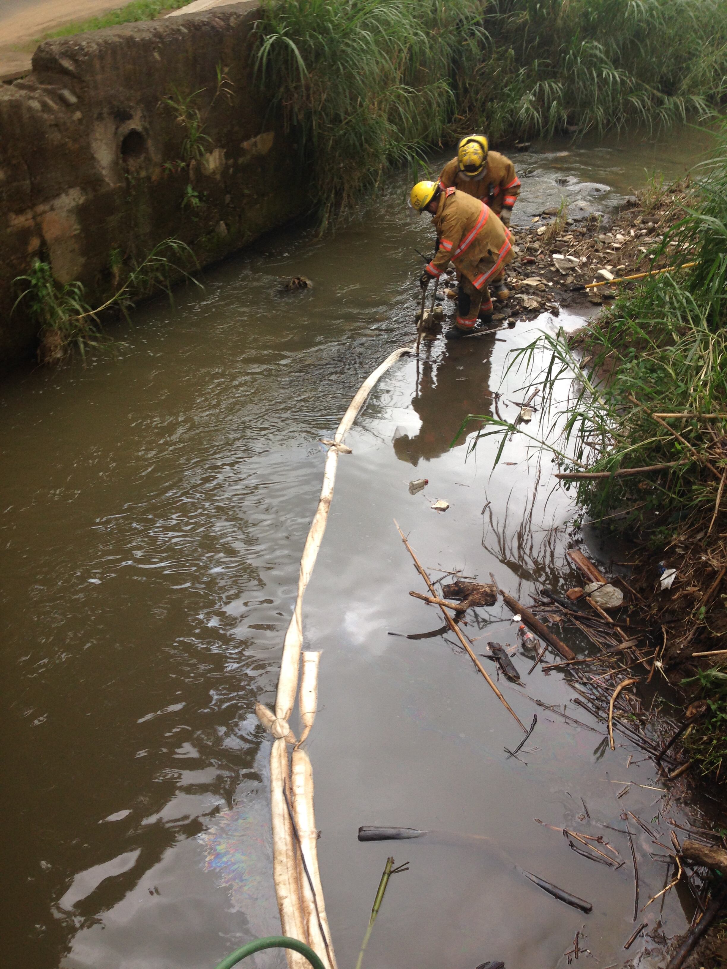De acuerdo con Guillermo Montoya, supervisor de turno de Bomberos, la primera unidad llegó al sitio a las 2:42 p. m. y 24 minutos después ya la escena estaba controlada en la estación de servicio, pero los bomberos seguían cerca porque parte del combustible derramado por las alcantarillas llegó al cauce del río María Aguilar.