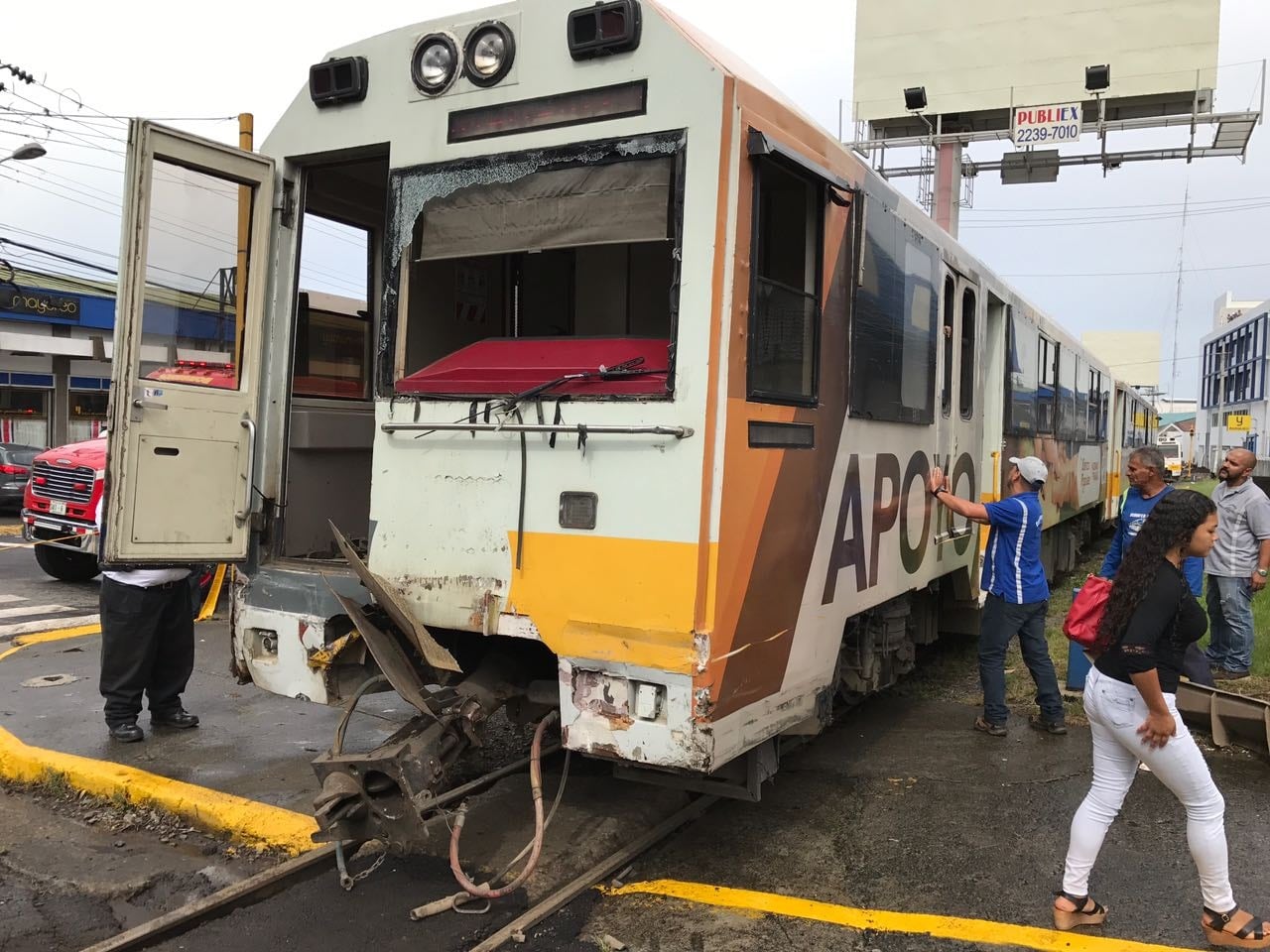 El incidente sobrevino a poco antes de las 8 a. m. en el tramo de vías entre el antiguo edificio del Consejo Nacional de Producción y el edificio de la Municipalidad de San José (avenida 12 y calle 36), cuando, aparentemente, un vehículo se atravesó.