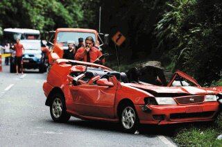 Las dos personas que viajaban en el asiento trasero resultaron ilesas. El accidente ocurrió al ser las 2:40 p. m. La piedra recorrió unos 200 metros desde la cúspide.