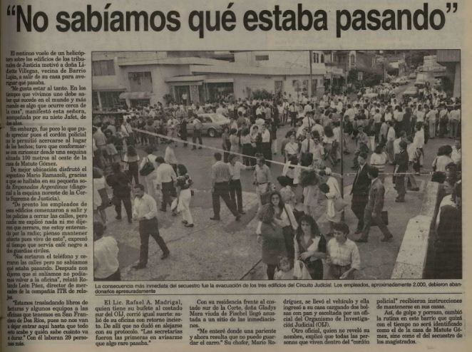 El lunes 26 de abril de 1993, una banda armada, denominada el “Comando de La Muerte”, se apoderó de la Corte Suprema de Justicia y secuestró a 19 de los 22 magistrados que la integraban, en lo que constituyó un suceso de calibre noticioso mundial. También quedaron secuestrados cinco funcionarios judiciales que se encontraban presentes durante la toma.