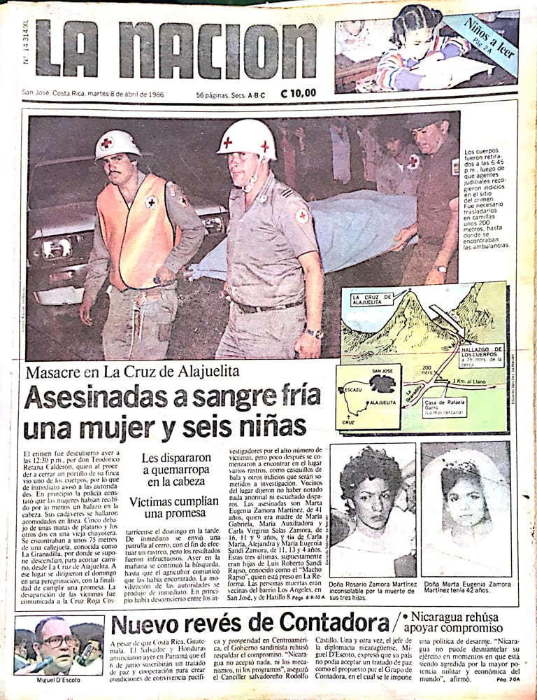 La masacre de Alajuelita: tras una frenética búsqueda desde el domingo en la noche por parte de cruzrojistas y autoridades, a mediodía del lunes se dio el hallazgo de lo impensable: la adulta y las seis niñas aparecieron asesinadas a balazos. (Archivo)