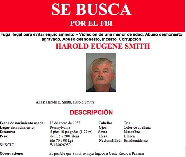 En la página del FBI se consigna que Smith era buscado por violación, abuso deshonesto, incesto y corrupción de una menor de edad.
