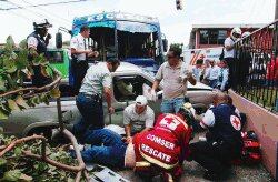 El accidente ocurrió a las 11 a. m. en una transitada calle; según voceros de la Policía del Tránsito se trata de una vía exclusiva para autobuses que usualmente van hacia el oeste de la capital.