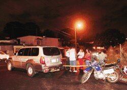Al menos dos ladrones huyeron a pie y sin buena parte del botín luego de que se les apagara el motor de este Hyundai Terracan que acababan de sustraer en una vivienda en el residencial Las Dalias, en Llorente de Tibás. Otro hampón logró escapar en un carro con electrodomésticos robados en una segunda casa, propiedad de Mínor Rodríguez.