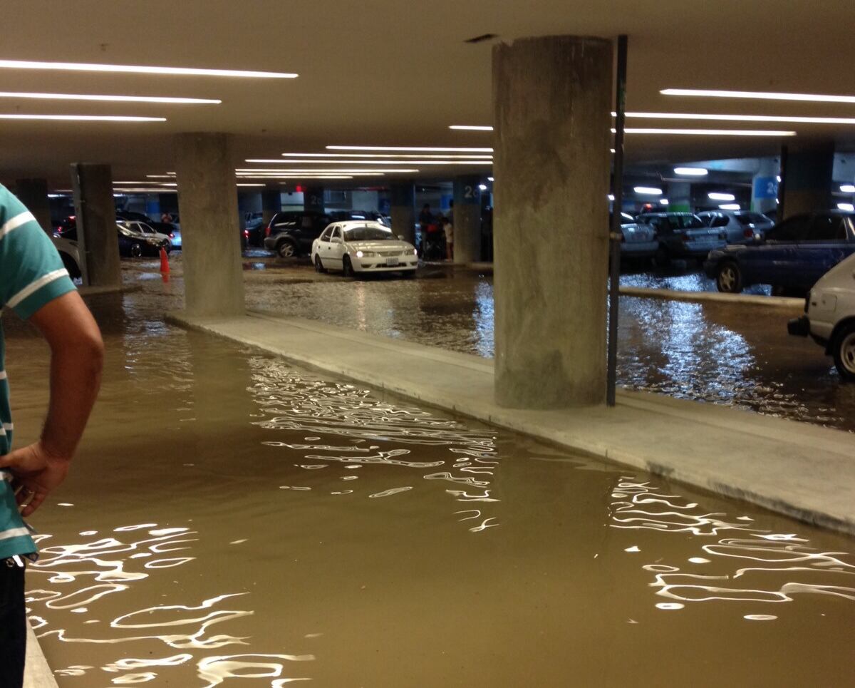Parqueo del City Mall se inunda debido a los fuertes aguaceros