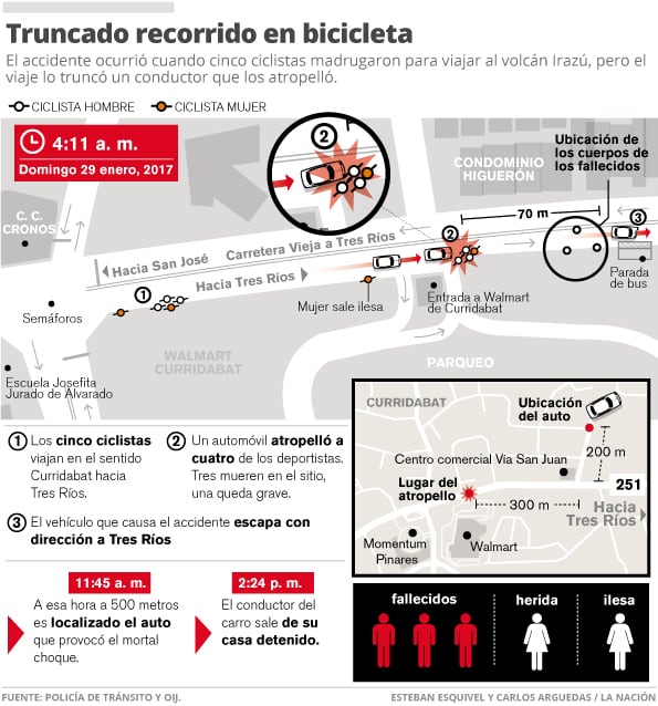 Auto que mató a 3 ciclistas viajaba a más de 100 km/h (Adrian Soto)
