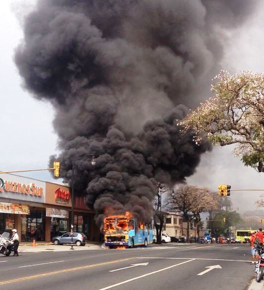 “Le doy gracias a Dios por el semáforo en rojo. Estaba ahí parqueado cuando oí un bombazo por debajo del motor y al mismo tiempo comenzó a agarrar fuego el bus. La gente estaba desesperada. Por el humo me estaba quedando inconsciente”, relató el chofer.