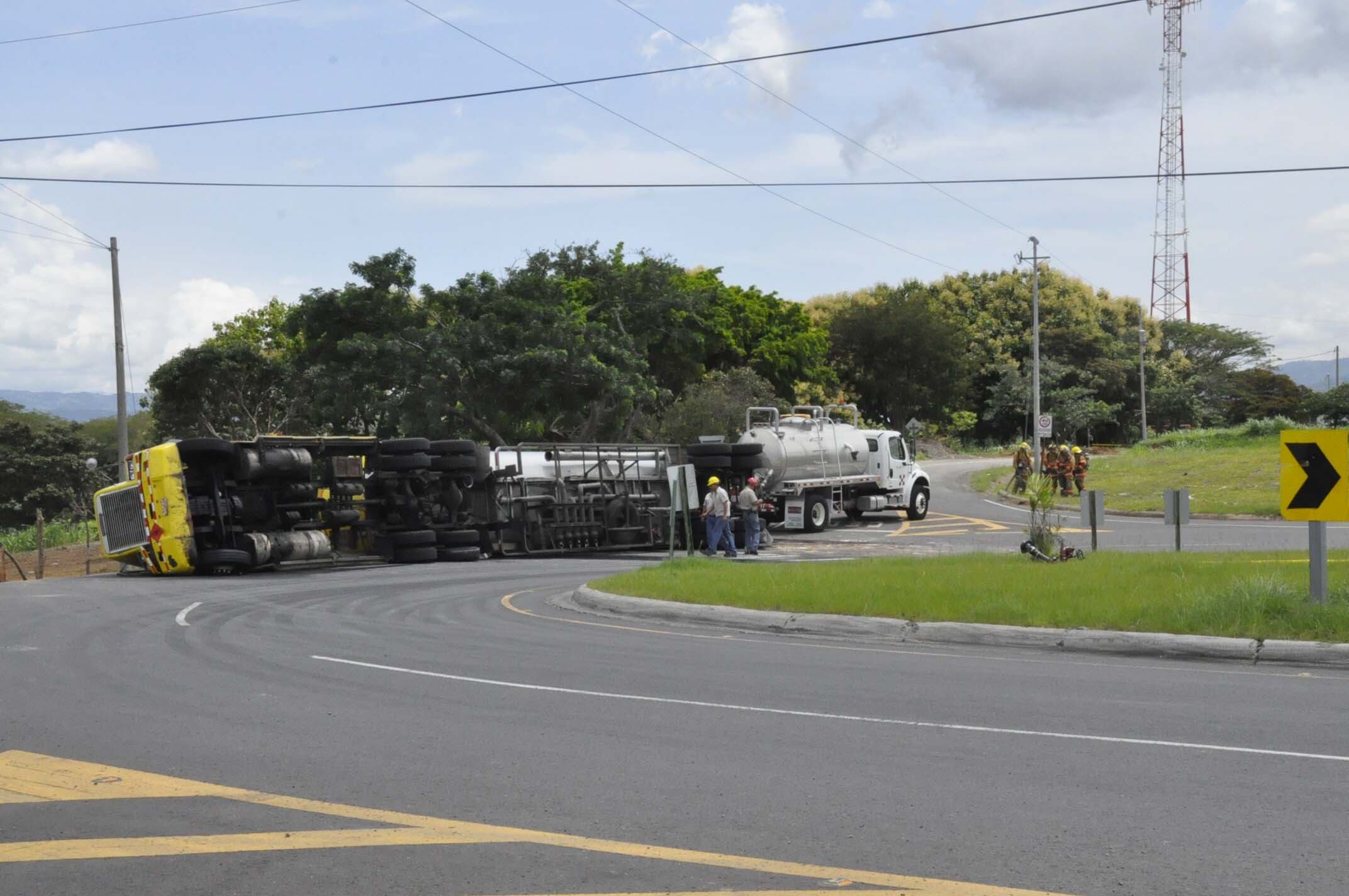 Este miércoles a las 10:39 a. m. el vuelco de cisterna cargado de combustible obligó a las autoridades de socorro y de Tránsito a cerrar la rotonda de acceso a El Coyol de Alajuela en el sentido Puntarenas - San José, por la ruta de Caldera.