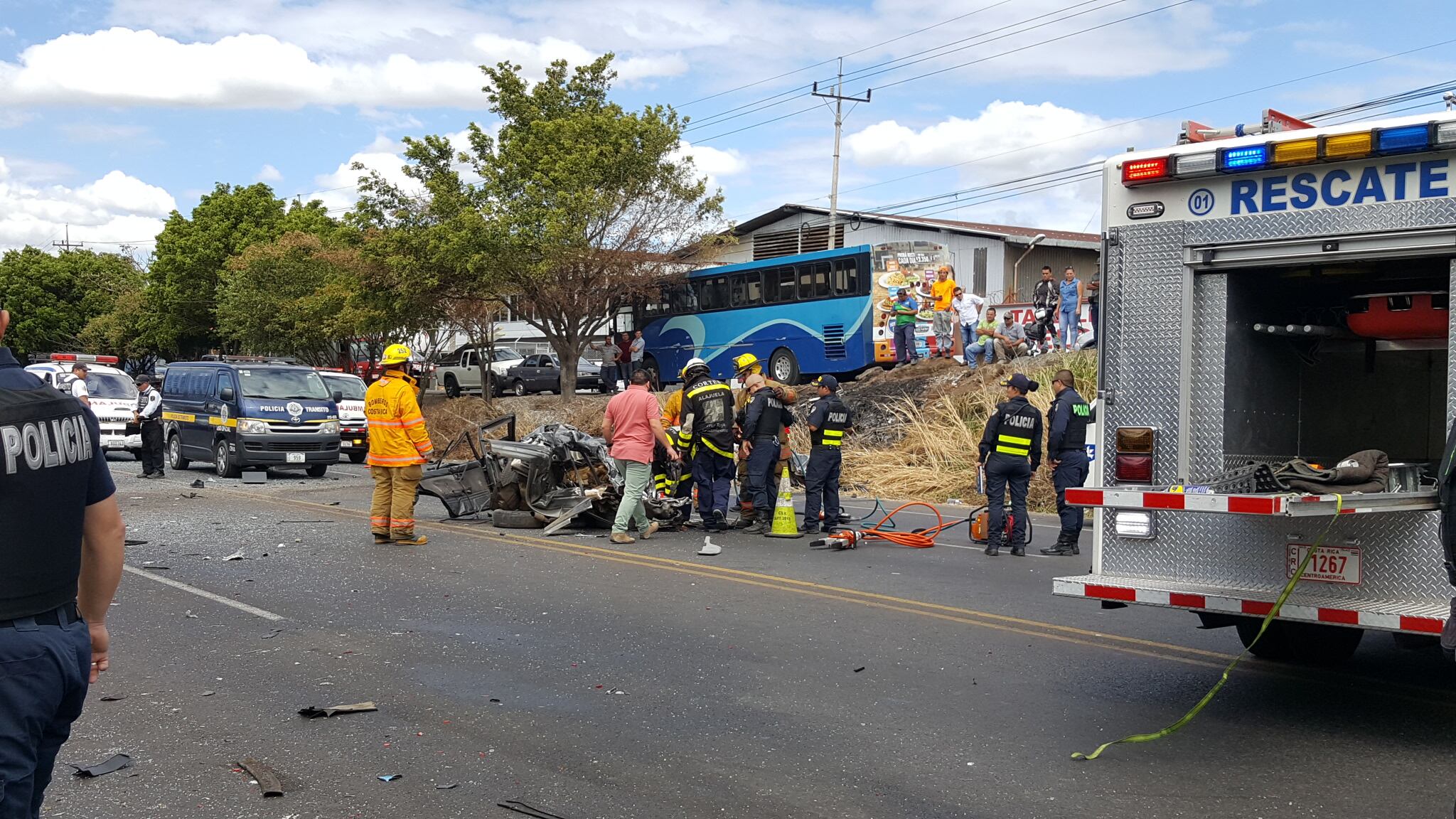 Manuel Retana, despachador de la Cruz Roja, indicó que cinco ambulancias de Alajuela atendieron la emergencia cerca de la fábrica Dos Pinos.