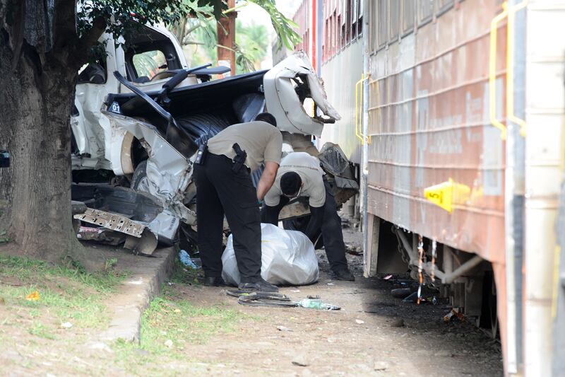 Según el Organismo de Investigación Judicial (OIJ), Céspedes invadió la línea férrea, lo cual provocó que el tren arrastrara el automóvil al menos siete metros.
