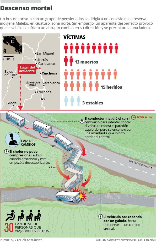 Chofer pierde control de autobús que cae en guindo de 27 m en Cinchona