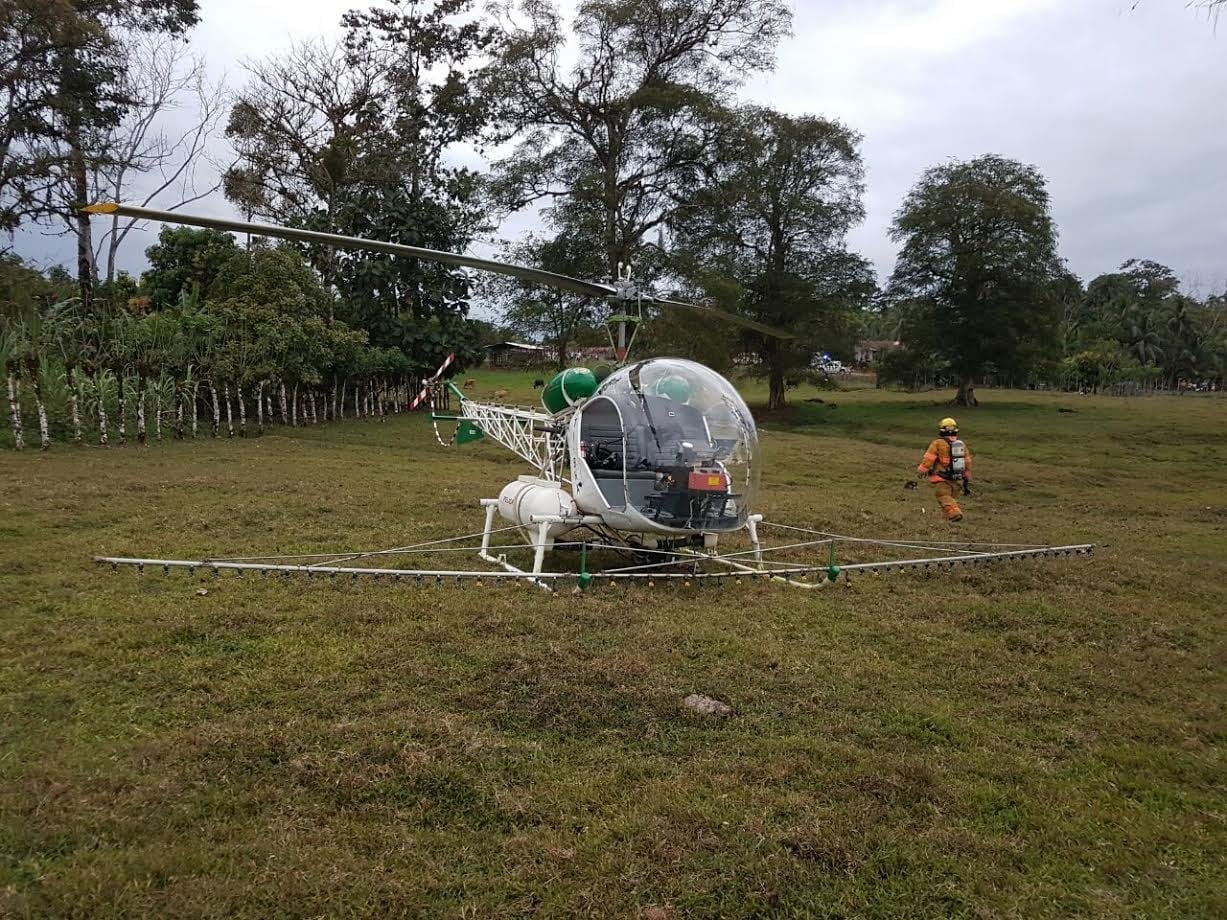 Helicóptero de fumigación realiza aterrizaje forzoso luego de falla mecánica