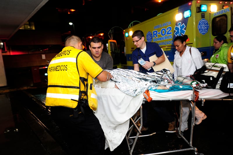 Una ambulancia de la Cruz Roja trasladó a la chiquita hasta el sector del túnel Zurquí, en la carretera Braulio Carrillo, donde se hizo el transbordo a una unidad del Cuerpo de Bomberos, que portaba el equipo de trauma.
