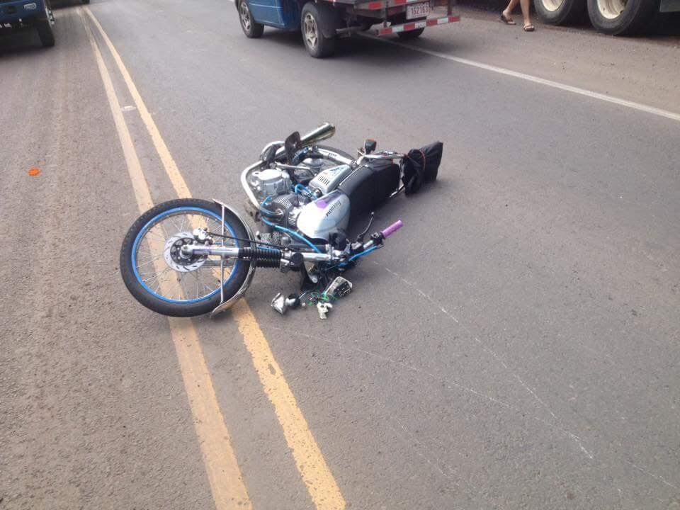 "Yo iba en sentido a Puntarenas pero de pronto vi al muchacho querer rebasar a un camión y luego se cayó. Él se incrustó en mi carril, no pude quitármelo ya que fue muy rápido la forma en que venía para mi carro", relató la conductora de apellidos Arguedas Hernández.