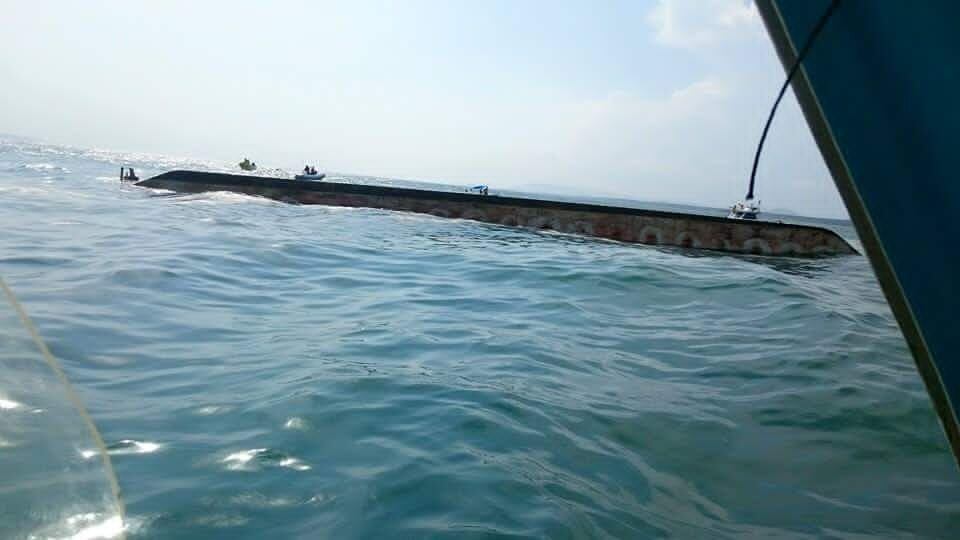 "Al parecer una ola grande golpeó a la barcaza y por eso se hundió. En este momento se está intentado retirarla del agua", dijo Cháves.