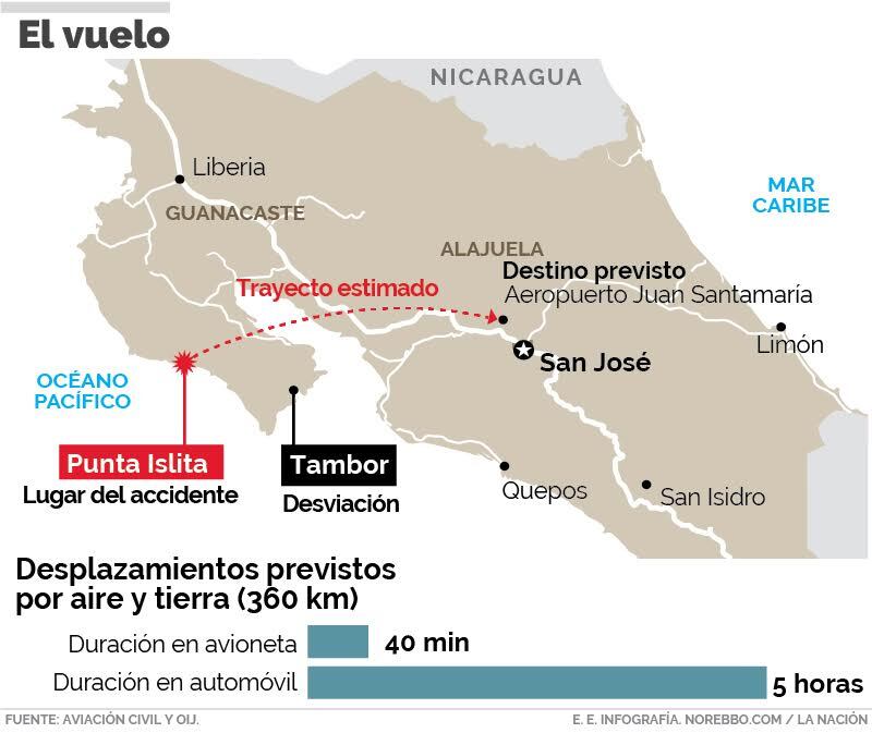 La nave matrícula TI-BEI, de la empresa Nature Air, tenía minuto y 30 segundos de haber despegado del campo de aterrizaje de Corozalito y se dirigía hacia el aeropuerto Juan Santamaría, en Alajuela. Solo logró volar dos kilómetros.