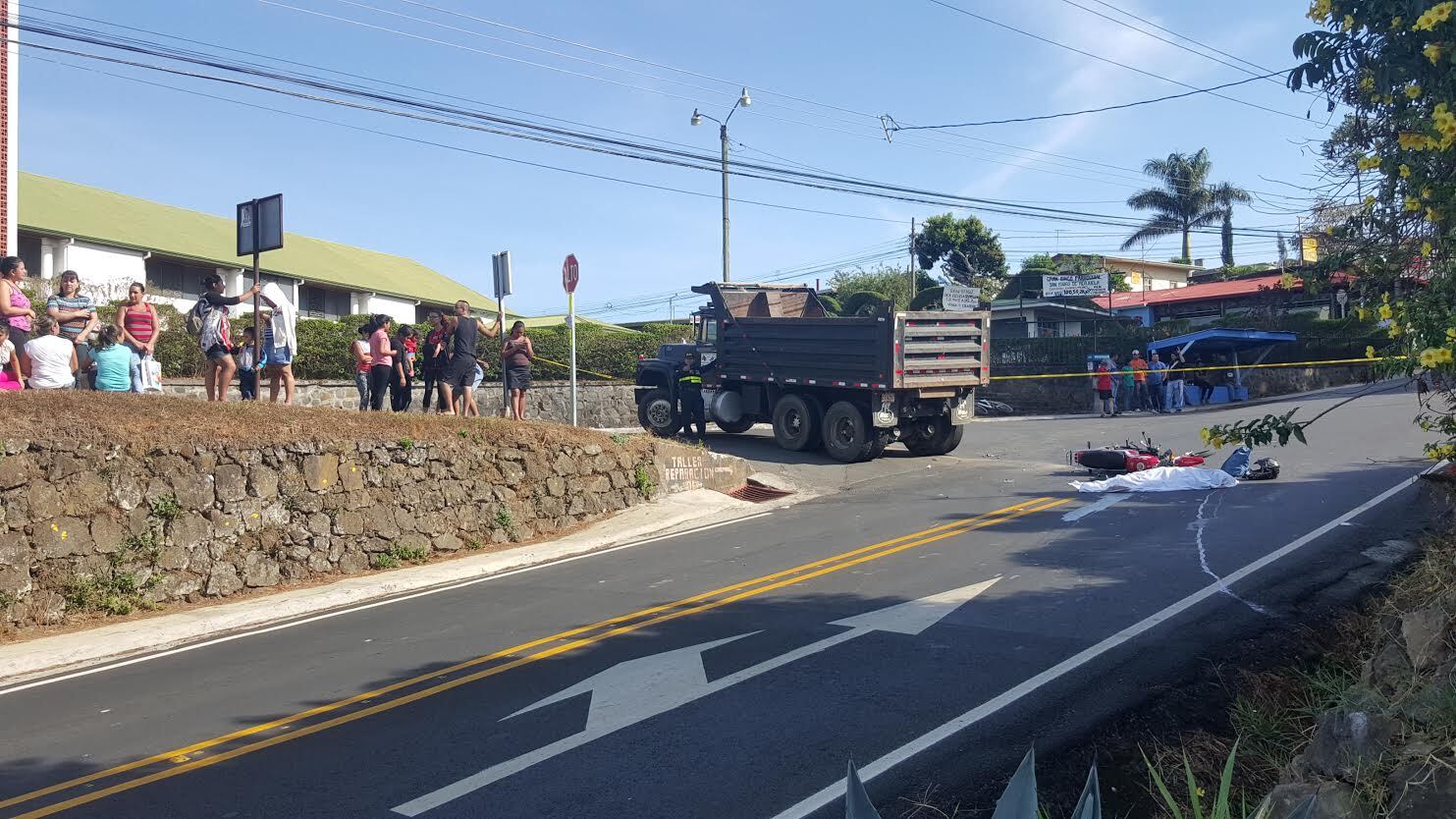 El joven de 25 años murió esta mañana luego de ser atropellado por una vagoneta en un cruce frente a la iglesia de San Isidro de Alajuela. (FRANCISCO BARRANTES)