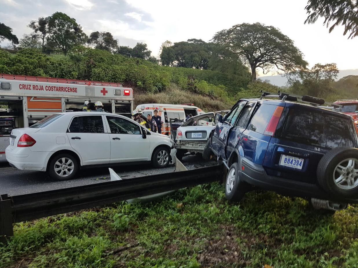 En el Honda CRV azul, viajaba Tony Santamaría Hernández, vecino de San Ramón, el cual debió ser llevado por cruzrojistas en condición delicada hasta el Hospital San Rafael, de Alajuela. El auto, modelo 1998, quedó sobre la baranda de la vía.