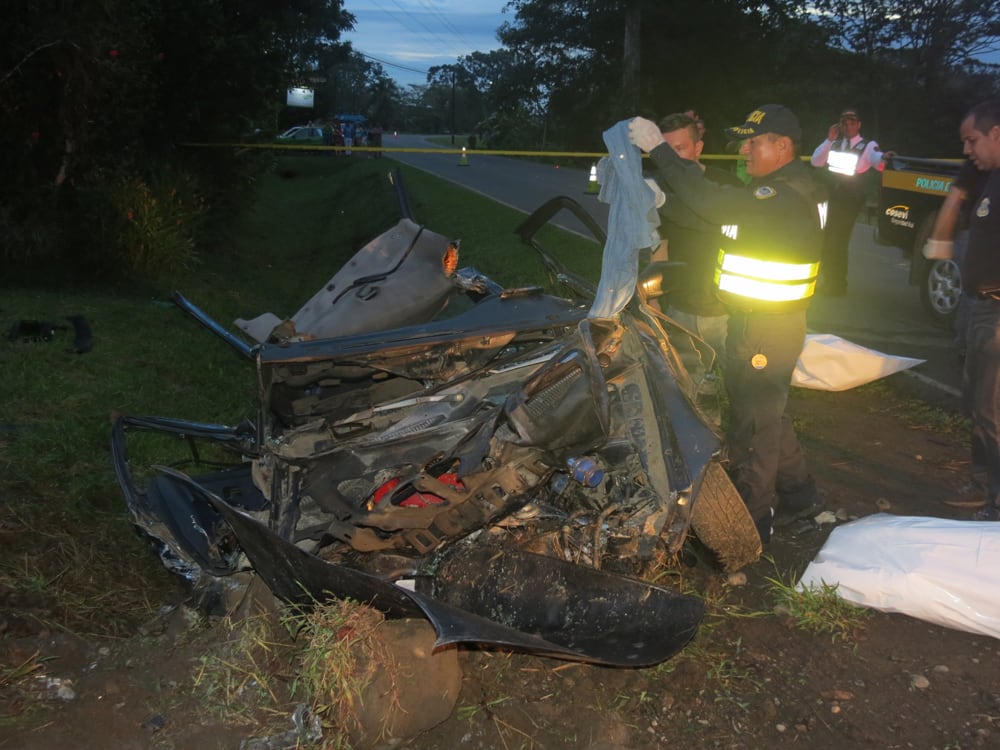 “Muchos de los vecinos dicen que el carro pasó a alta velocidad”, comentó el oficial de tránsito, Pedro Arce, jefe de Tránsito de La Fortuna, quien agregó que el vehículo no tenía la revisión técnica al día.