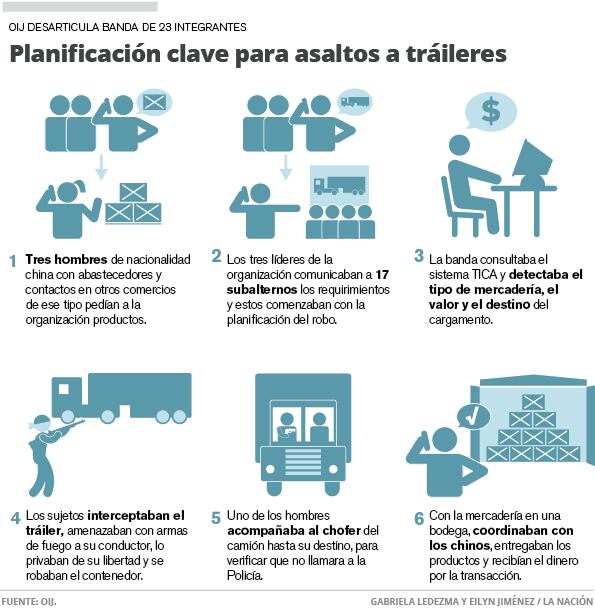 Una banda que se dedicaba a asaltar tráileres con mercadería en diferentes puntos de Costa Rica se aprovechaba del TICA, un sistema digital que controla los cargamentos que ingresan a las aduanas del país, para cometer los hechos delictivos.