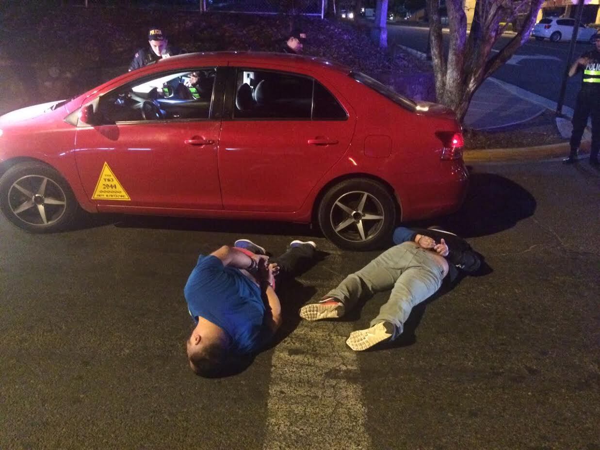 Los sospechosos huyeron hacia el sector de Escazú y, gracias a la rápida acción de la Fuerza Pública, fueron aprehendidos en San Rafael, frente a la escuela Yanuario Quesada.