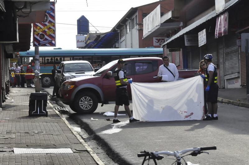 El doble homicidio se registró ayer en la madrugada frente a un local ubicado en calle 6 y avenida 6, en el centro de San José.
