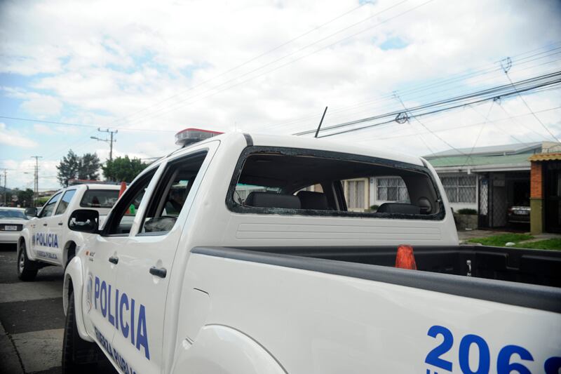 Los sospechosos intentaron huir de la Fuerza Pública e intercambiaron disparos con los oficiales. Dos de los sospechosos resultaron heridos y la patrulla policial que los perseguía recibió un impacto de bala en el vidrio trasero de la cabina.