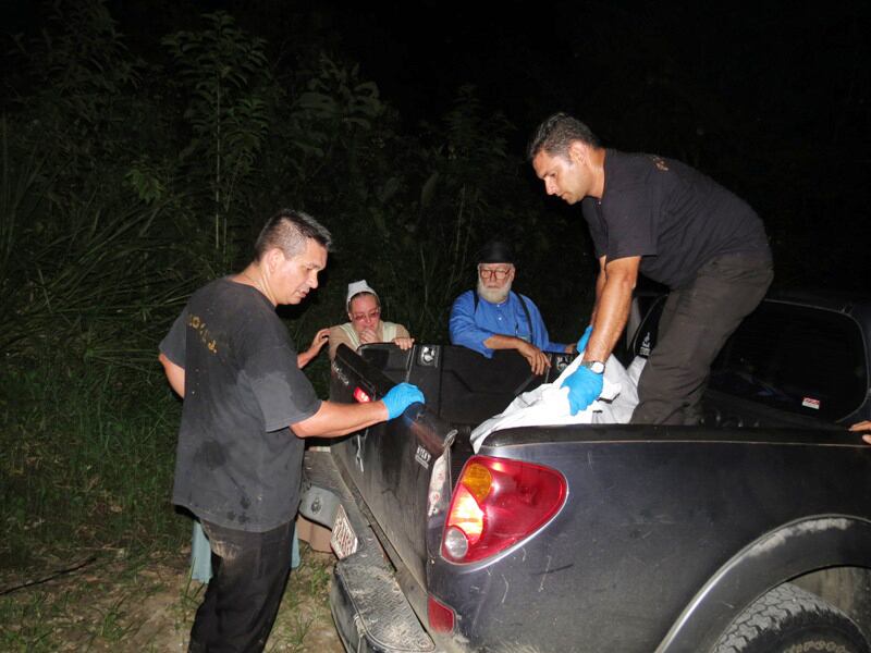 Luego de llamar a la Policía, el sujeto condujo a los oficiales de la Fuerza Pública en medio una espesa vegetación, hasta el sitio donde el cuerpo quedó tendido, cerca de una quebrada.