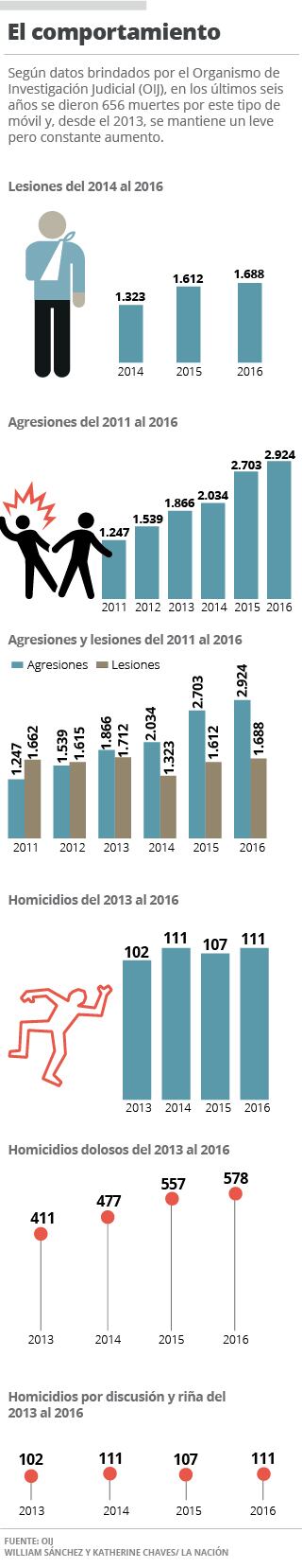 Según datos brindados por el Organismo de Investigación Judicial (OIJ), en los últimos seis años hubo 656 muertes en estas circunstancias y, desde el 2013, se mantiene un leve pero constante aumento.
