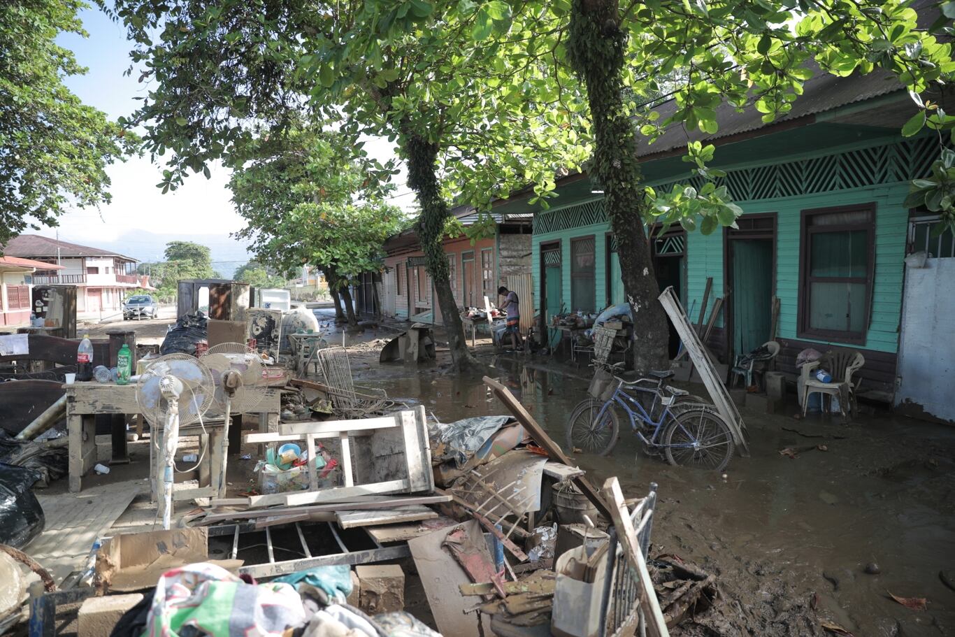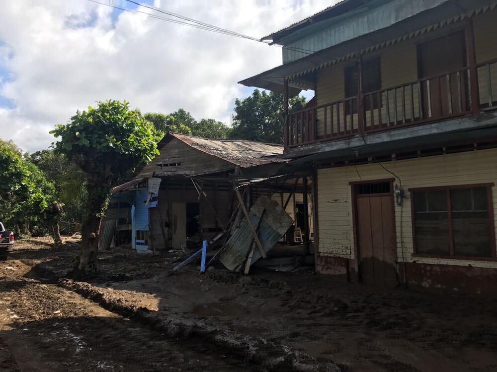 Edificaciones destruidas en Ciudad Cortés amanecen el sábado 7 de octubre, luego de que la tormenta Nate azotó el pueblo el 5 de octubre. (Natasha Cambronero)