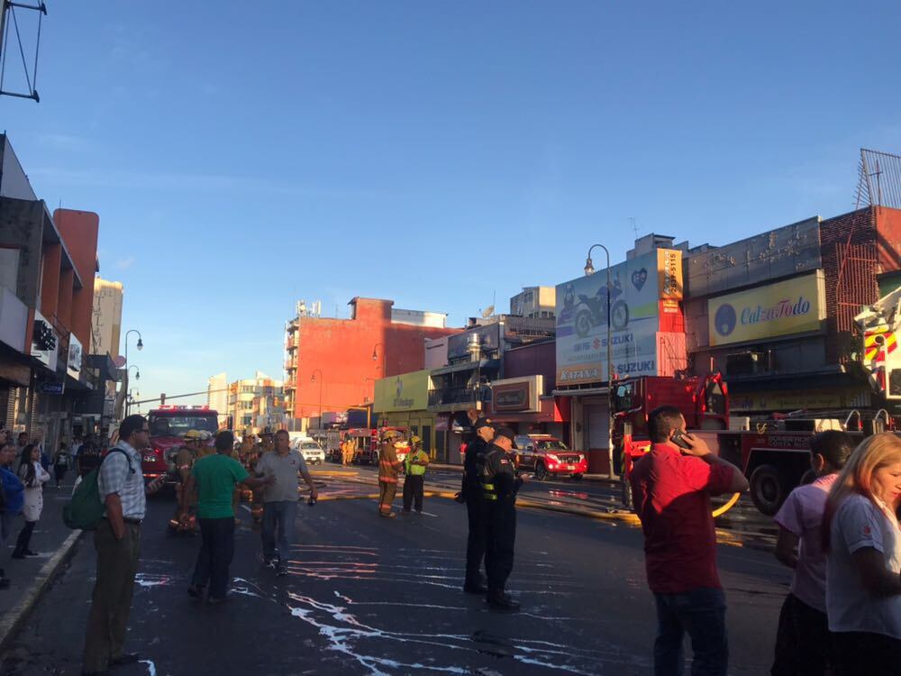 Al sitio se desplazaron 12 unidades, incluyendo cuatro extintoras, un camión cisterna, una ambulancia, dos unidades de rescate y una plataforma, para evitar que el fuego tomara otras edificaciones cercanas.